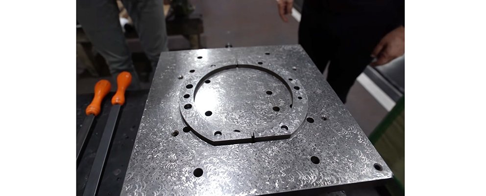 では、どこにきさげをするのかというと、それは部品同士が接合する面。接合部にきさげを施すことで、長期間にわたって機械の精度が維持されるそうです。平面研削では実現できない精度を、手作業できさげによって実現しているというのだから本当に驚きです。