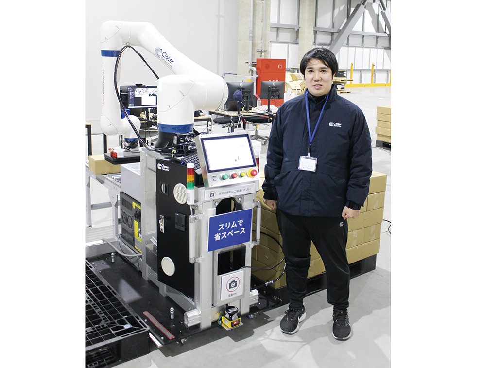 2021年設立のベンチャー企業、Closer(クローサー)が開発したPalletizy(パレタイジー)だ。筑波大学大学院知能機能システム学位プログラム(博士後期課程)在学中の樋口翔太社長は中小規模の工場をターゲットに開発したと言う。