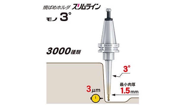 鋼アーバ比で曲げ剛性が3倍とビビりに強く、真円度2.8umといった高い加工精度を達成します。