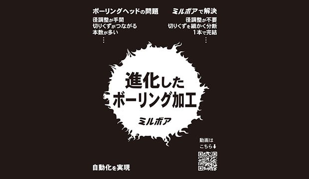 「ミルボア」は、ミーリングカッタを用いたヘリカル制で、高精度なボーリング加工を実現するホルダです。