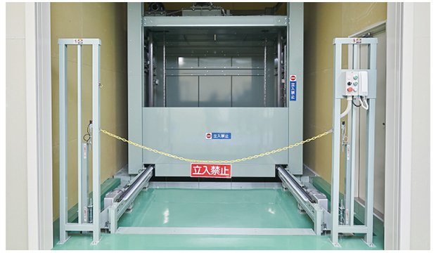 導入に関する建築確認の申請手続きも不要。法的安全規約に基づく安全装置を完備し、お客様に運転中の「安心」を提供しています。耐震強度のある自立タワーフレームは、設置先の新設や既設を問いません。加・減速はインバーターで制御しますので、荷崩れの心配もなくスムーズに搬送します。