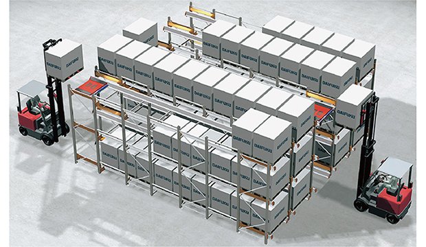 低コストで拡張性に優れた電動台車式水平流動棚