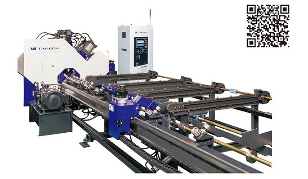 デザイン、機能性に優れた「CBF-4020Ⅱ-M」は、栄えある第54回機械工業デザイン賞IDEAの「日本商工会議所会頭賞」を受賞。本製品はミーリング加工対応の3軸ドリル孔あけ&丸鋸切断複合機で、角パイプ, アングル,チャンネル,H形鋼が加工でき、孔あけ・ドリルマーキング・タップ加工・ミーリング加工から切断まで対応。10本搭載のATC装置によって段取替えの機械停止時間を短縮。オプションとして自動搬入装置、自動搬出装置、NC機連動加工データ作成ソフト、印字装置などをご用意しました。