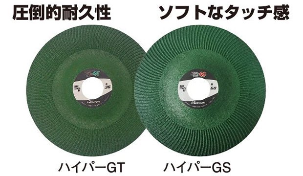 重研削から軽研削まで幅広い用途に対応したオフセット研削砥石「ハイパーGT」「ハイパーGS」や、仕上げ研磨や塗装剥がし、錆落とし、キズ直し等に最適な「ハイパーネット」も新発売となり、”ハイパーシリーズ”として研削・研磨においても充実したラインナップを取り揃えております。