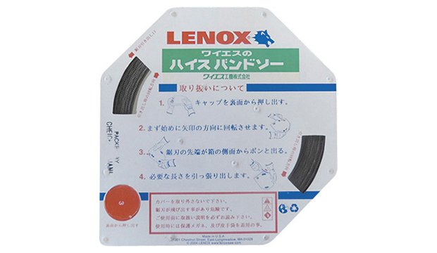 また、コンターマシンには世界で初めてバイメタルバンドソーを開発したアメリカLENOX製バンドソーダイマスター2(Mー42コバルトハイス)を標準採用しています。ワイエス工機は、ダイマスター2において国内トップクラスの販売実績を誇ります。