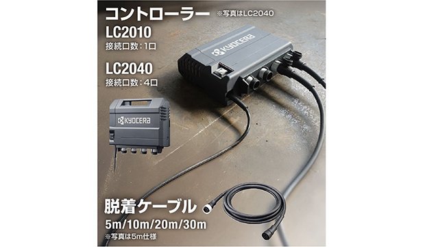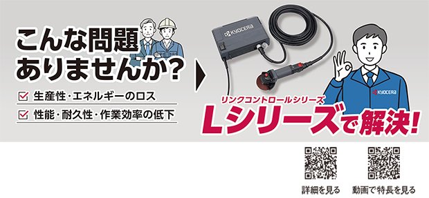 リンクコントロールシリーズは、工具の心臓部であるブラシレスモーターに必要な制御回路を分離させ、この二つを専用ケーブルで繋いだ独自の新発想から生まれたシステムで『コントローラー』+『ケーブル』+『工具』の3つのユニットで構成され、金属加工の作業内容に合わせて工具を付け替えて使用します。