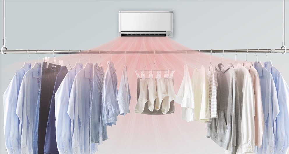 衣類乾燥に関して「乾くのに時間がかかる」「乾きムラが多い」「(除湿機の)タンクの水捨てが面倒」などの不満に応えて開発した。新製品は除湿方式に冬でもパワフルな「デシカント方式」を採用したことで季節を問わず安定した衣類乾燥が可能。最大約12m3/minの大風量かつ幅約260cmの広範囲の送風で、大量の洗濯物も両端までしっかり風を当てる。希望小売価格は10万7800円(税込、工事費別)。