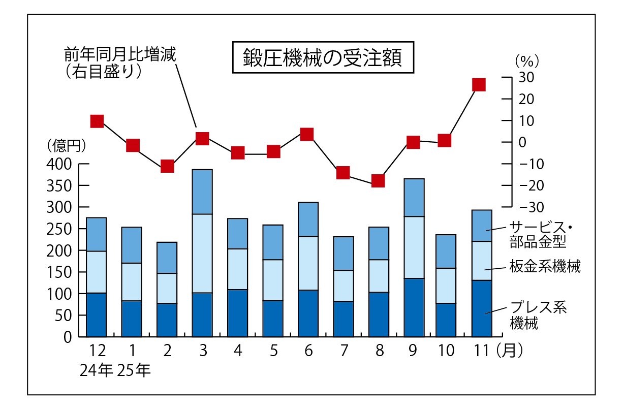 12月の鍛圧機械受注、11%増の307億円